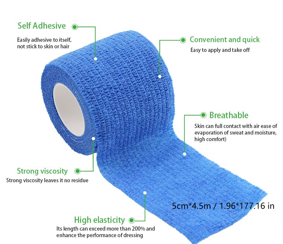 Latex Free Self Conferent Wrap er så allsidig at du kan bruke dem som en vanlig vare i det medisinske settet ditt for å pakke ødelagte bein og sikre medisinske dressinger. Du kan også bruke det som en vanlig beskyttelse i dagliglivet og idretter, for eksempel du kan pakke den rundt fingrene mens du skriver, du kan også bruke den til å pakke badmintongrep osv. For å øke friksjonen. Sammenhengende bandasje er også et vanlig verktøy som brukes av veterinæren og kan brukes til å dekorere og binde kjæledyr som hunder og katter. Fordi bandasjen er veldig elastisk, kan du også feste den til ledd og andre områder som beskyttelse under trening.